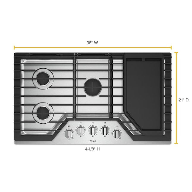 Whirlpool 36-in 5 burners Stainless steel Gas Cooktop (Griddle Included)